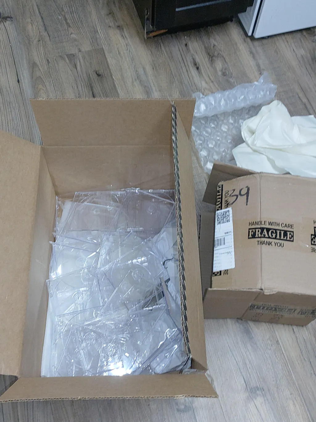 Other than that , I'd ask that maybe wrap rhe cases individually or apply a peel off cellophane or paper sheet to the front panel of each jewel box so that they don't get scratched up in shipping .